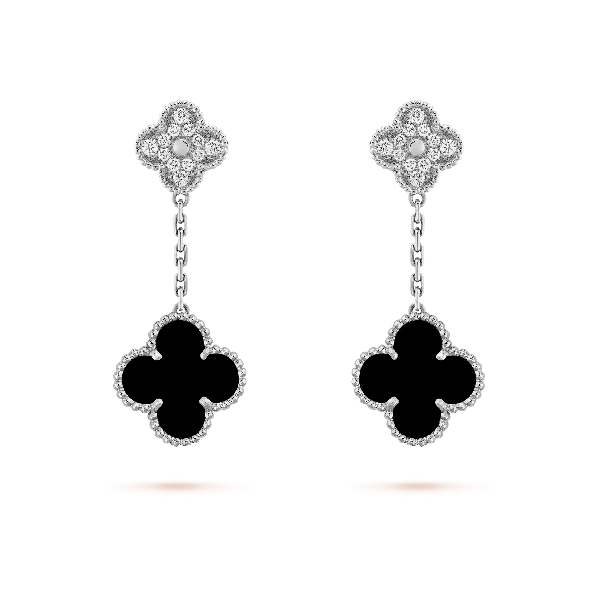 [Eternal Jewelry]CLOVER 2 MOTIFS DIAMOND ONYX EARRINGS SILVER